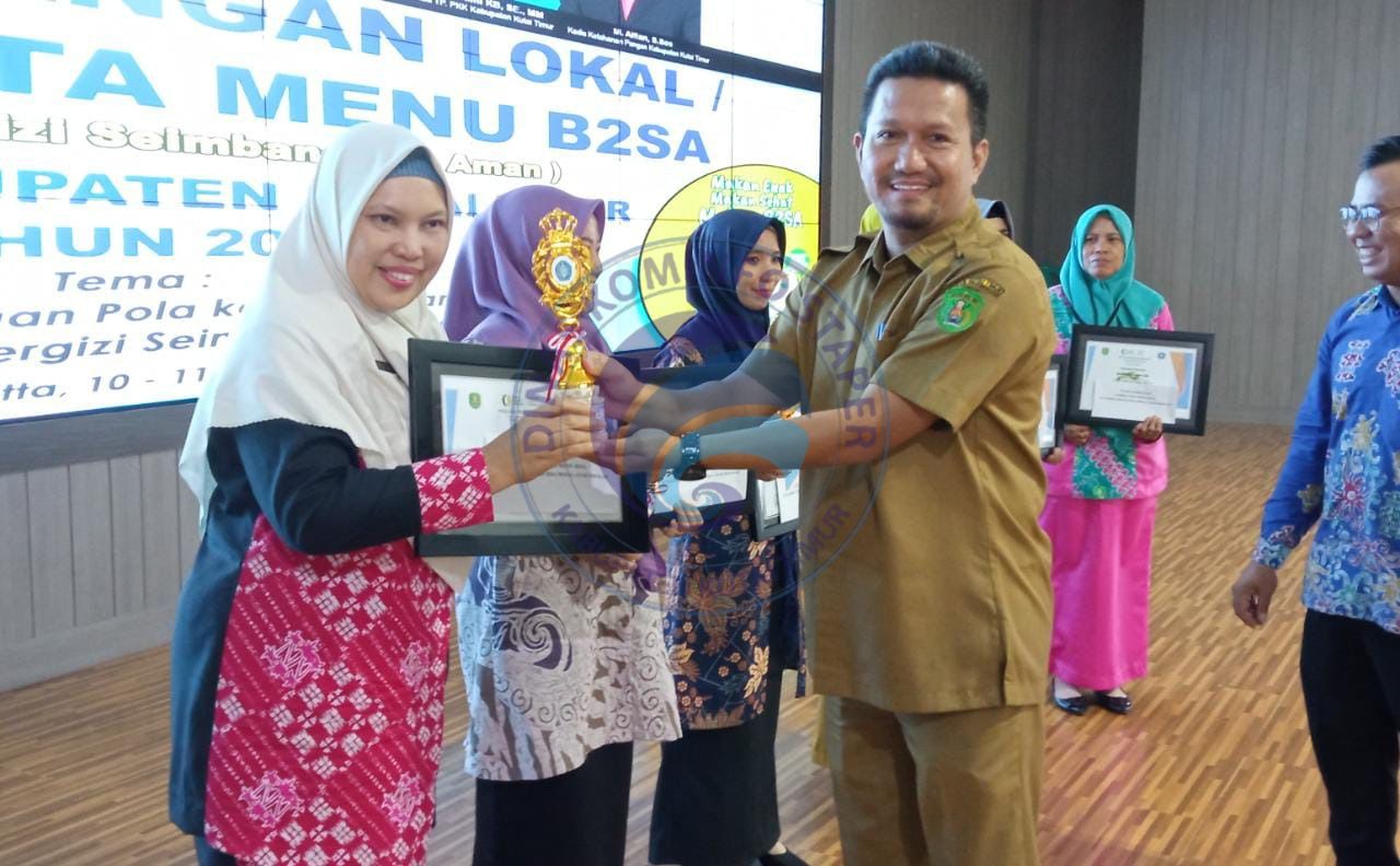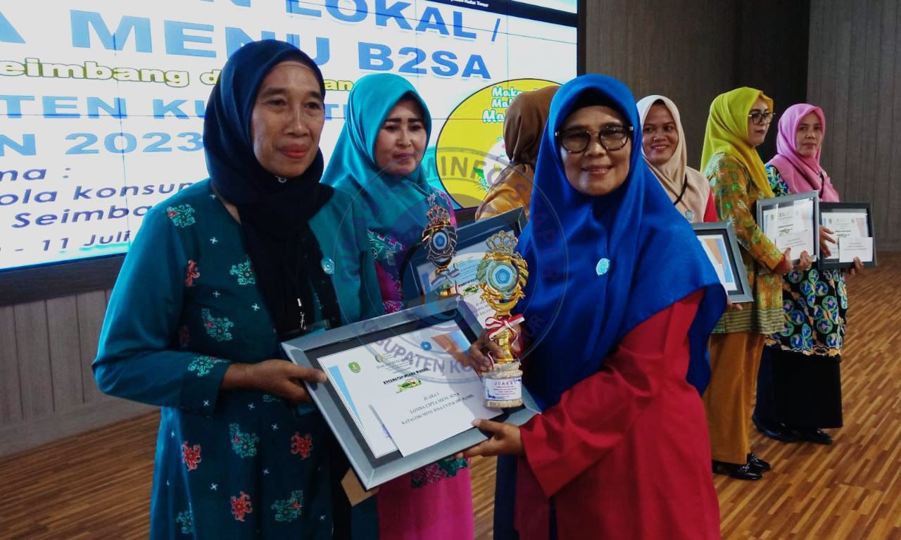 SANGATTA - Di lomba cipta menu pangan lokal Beragam, Bergizi seimbang dan Aman (B2SA) tingkat Kabupaten tahun 2023, garapan Dinas Ketahan Pangan (Diskepang) berkolaborasi dengan Tim Penggerak Pemberdayaan Kesejahteraan Keluarga (TP PKK) Kabupaten Kutai Timur (Kutim), Kecamatan Muara Wahau menjadi juara pertama kategori menu ibu hamil. Sedangkan untuk katehori menu bekal sarapan anak sekolah menjadi milik kecamatan Batu Ampar.